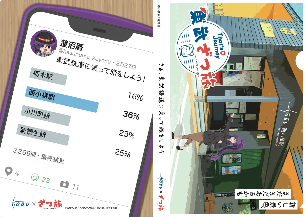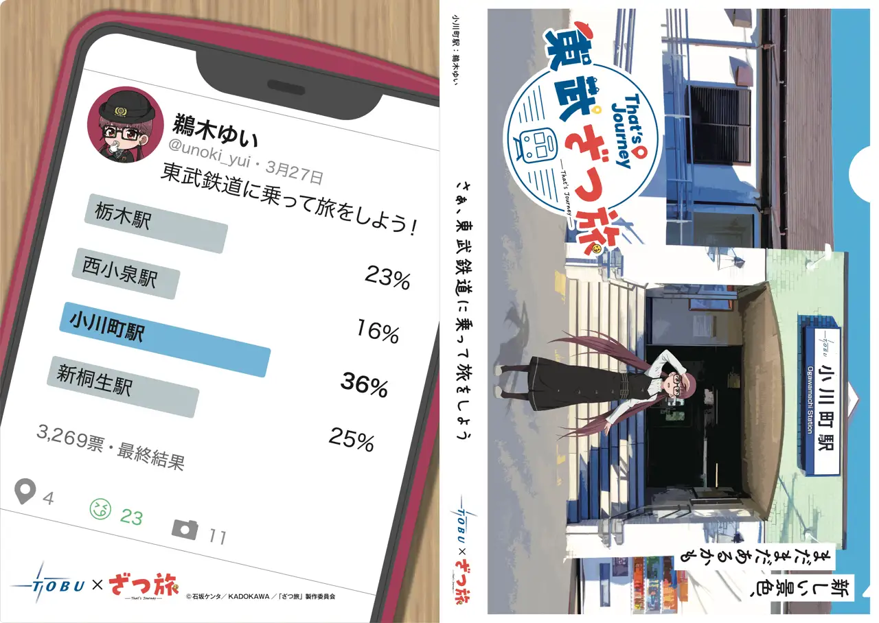 西小泉・新桐生・栃木・小川町いずれか1駅をテーマとしたオリジナルクリアファイル付リーフレット
