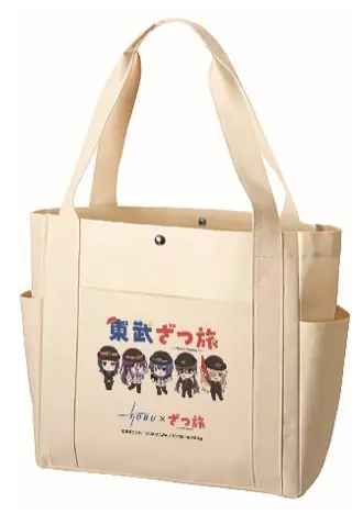 | 商品 | オリジナルトートバック・温泉タオル・チケットホルダーの3点セット ※キャラクターたちが東武鉄道の駅係員や乗務員の制服を着たオリジナルのちびキャラグッズがデザインされています。 |